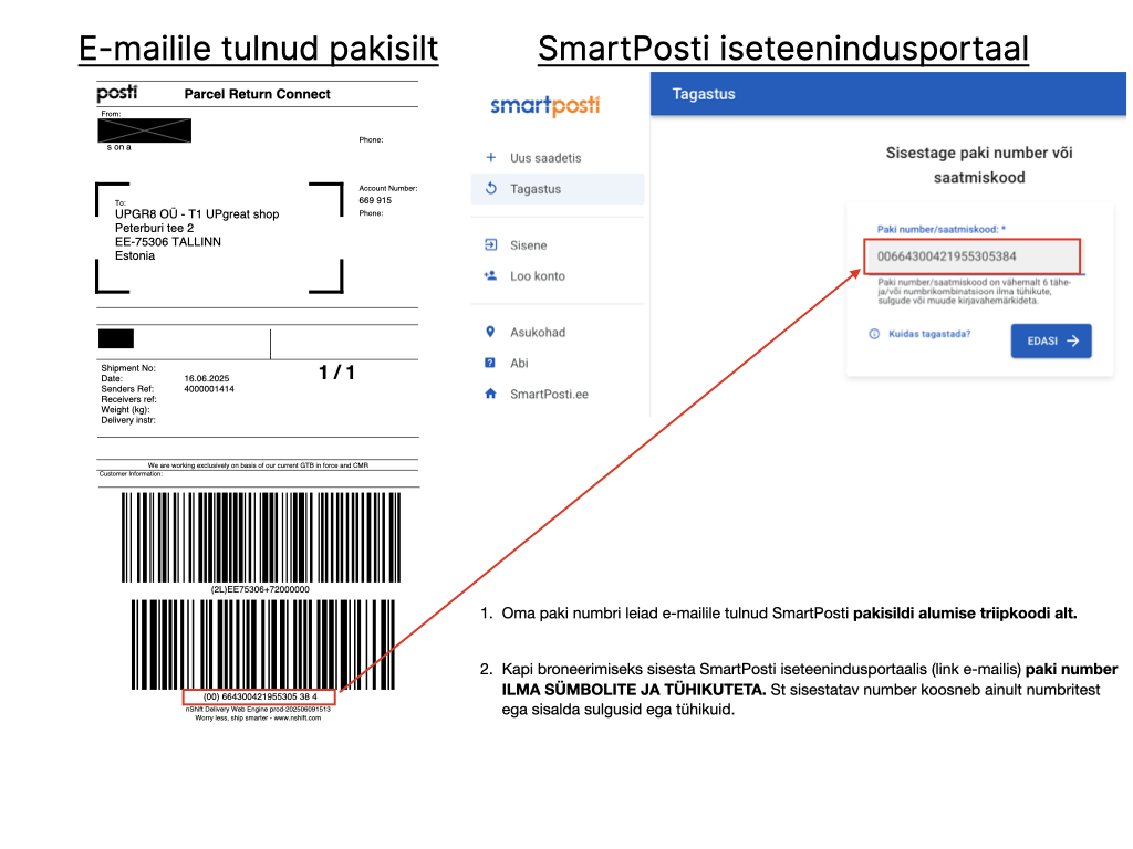 Broneeri omale sobivas asukohas SmartPosti pakiautomaadis olev kapp. Saaja ja saatja andmed on eeltäidetud, pead vaid sisestama paki numbri.